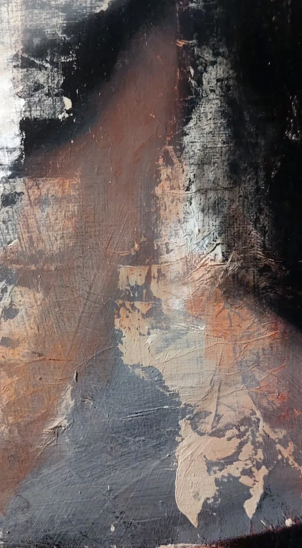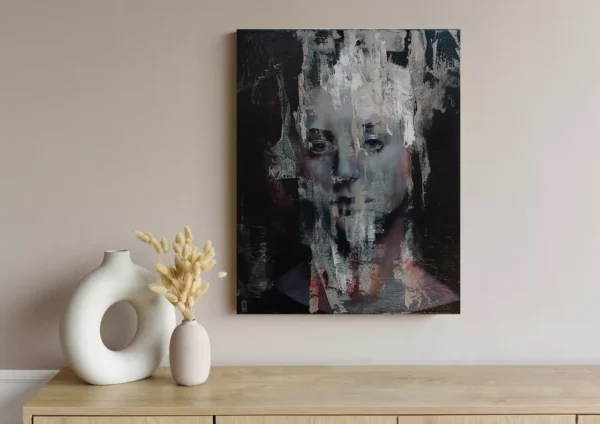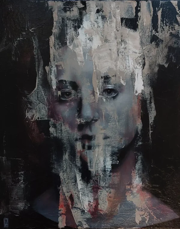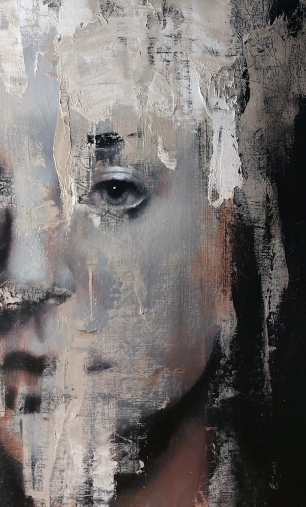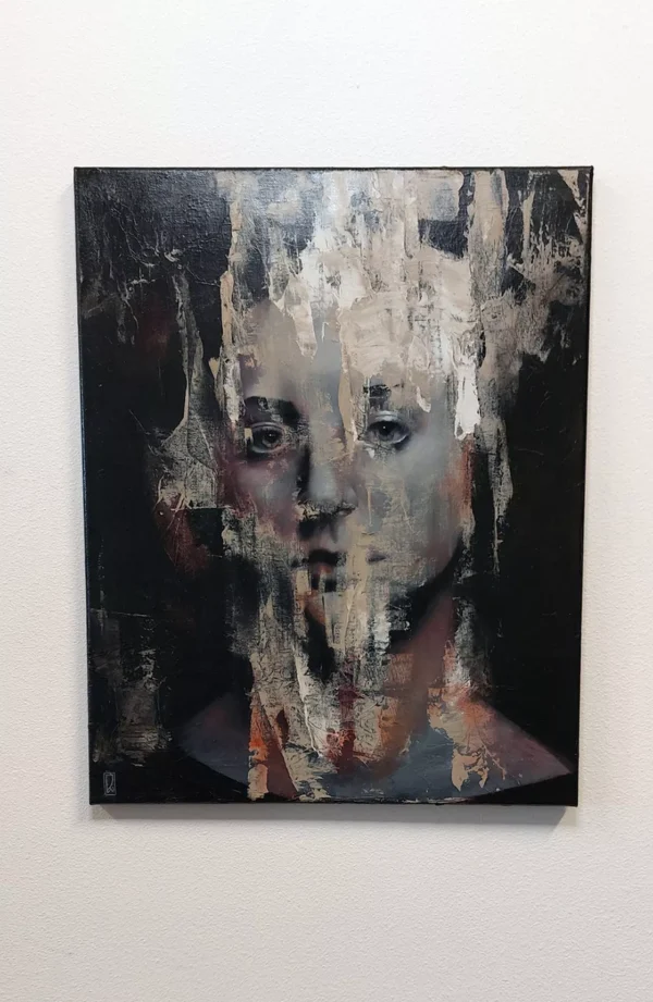 This work is part of the “Ephemera” series, which is focused on emotional, dream-like representations of the figure. Through the fusion of realism with expressive, textured brushwork, the central figure emerge from an atmosphere that evokes a tension between identity and dissolution, suggesting fleeting moments in which their thoughts and feelings come to the surface. The overall mood is one of mystery, fragility, and emotional depth, drawing the viewer into a psychological space where the boundaries between presence and absence blur.