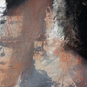 “Sacrificio” is part of the “Rites” series, which explores the concept of transmutation and the beauty of imperfection. The idea of order and purity is replaced by the exploration of the frailty of being human, as well as its capacity for regeneration and reconstruction. The pieces are deliberately maculated with tears, cuts, and paint scrapes, and sanded to create holes and crevices, creating more tactile spots with materials like gesso, cold wax, and paper. The textures and flaws that emerge from that process are reworked or enhanced, creating new avenues of dialogue with the work.
